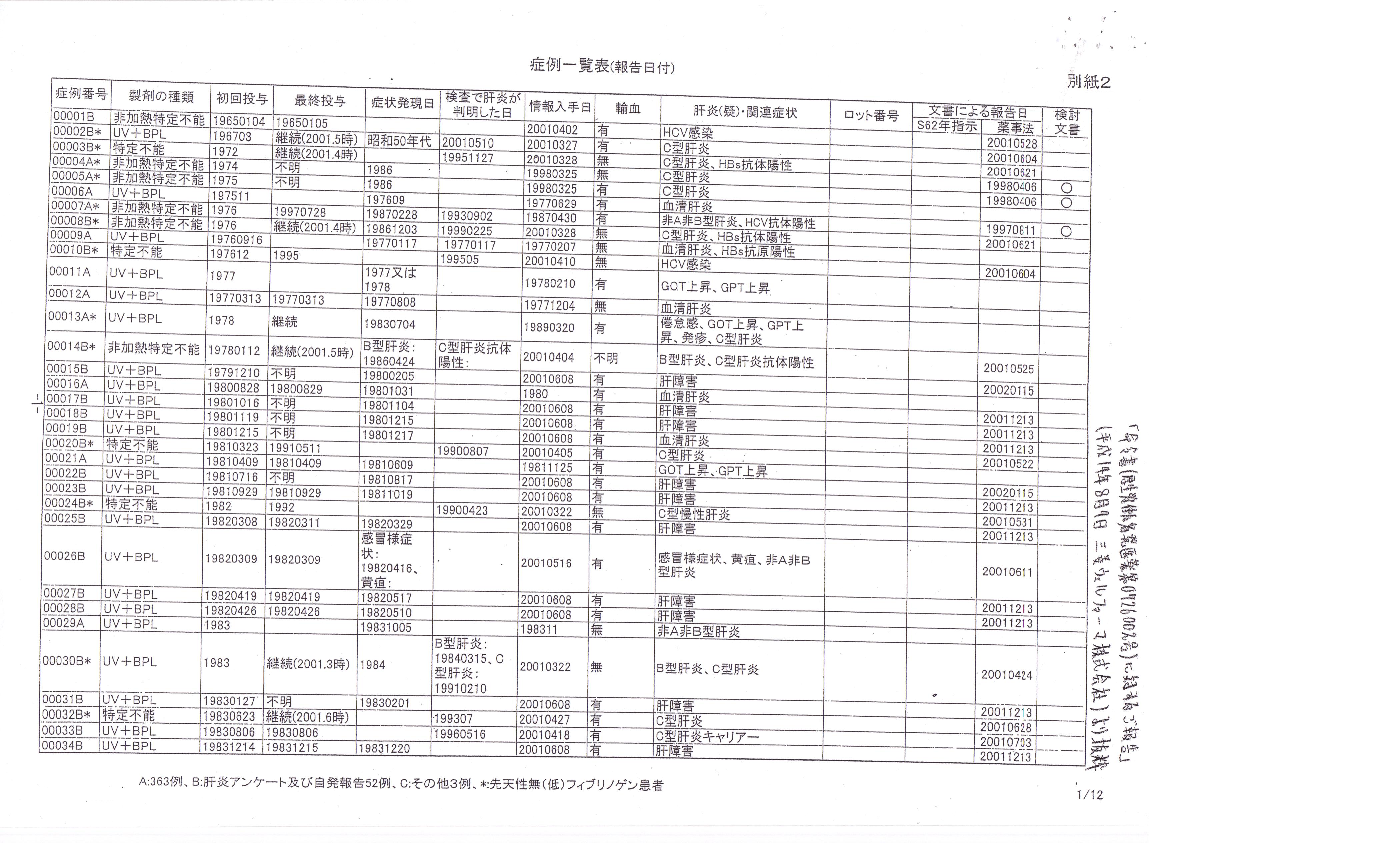 症例一覧表(報告日付)