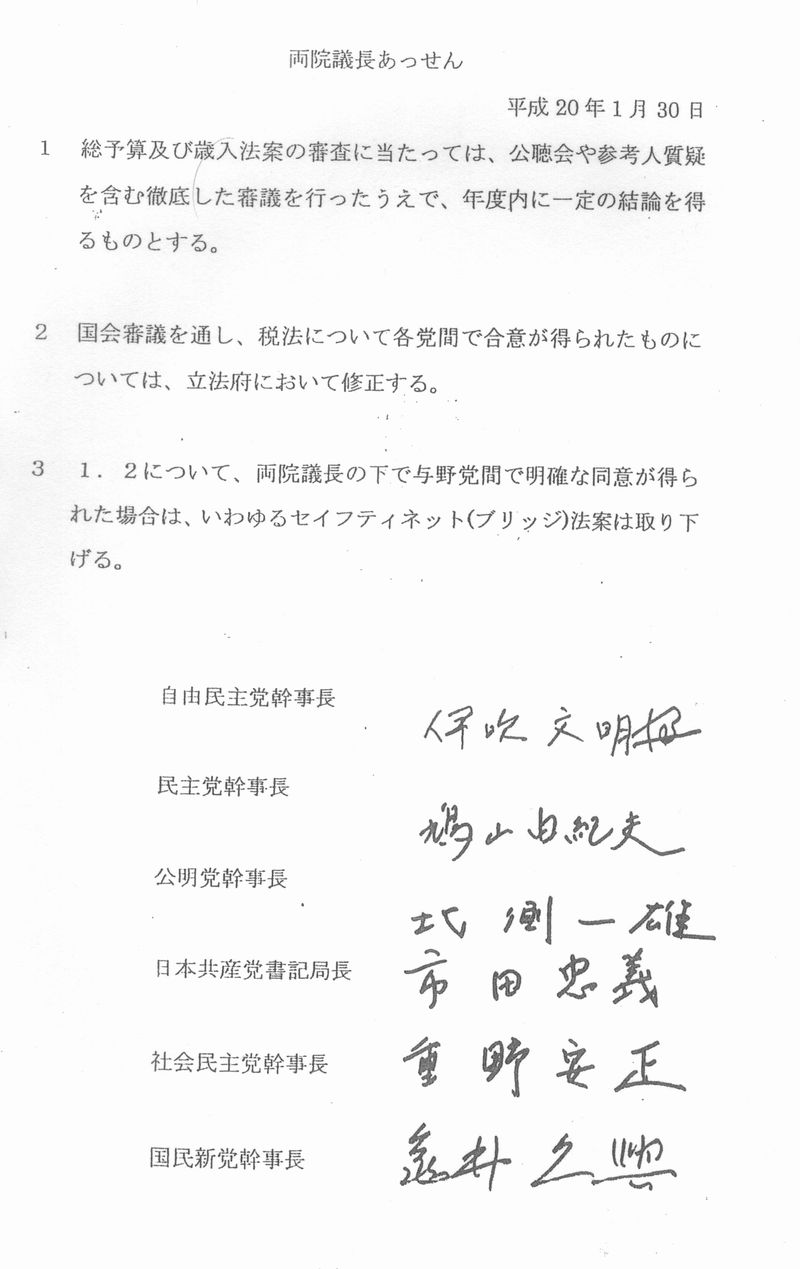 まず、そのまえに「議長あっせん」の現物を見てもらおう。